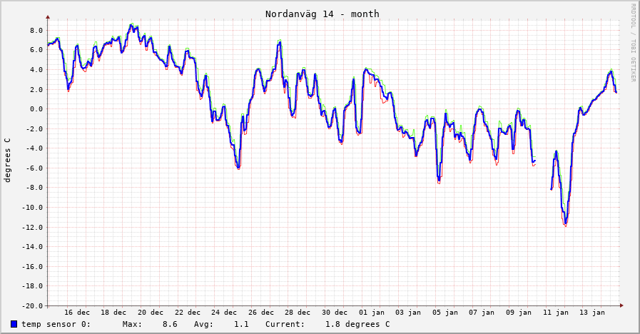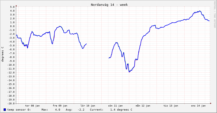 Klostervallen, Nordanväg 14 - utomhustemperatur: 1.6